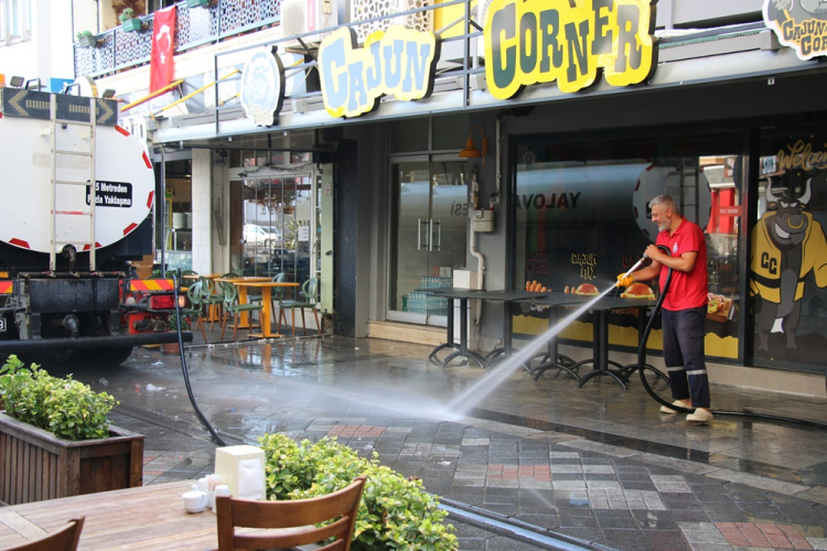 Yalova'da sokak yıkama çalışmaları aralıksız devam ediyor