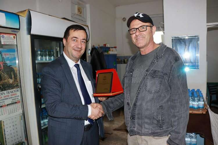 Başkan Canbay kahvehane işletmecileri Bilal Şensöz, Ferdi Metin ve İlhan Can'a Mavi Kapak Projesi’ne gösterdikleri duyarlılıktan dolayı teşekkür ederek, plaketlerini taktim etti.