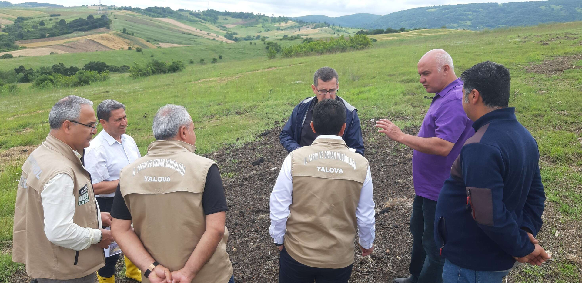 Yalova İl Tarım ve Orman Müdürü Suat Parıldar ve beraberindeki heyet, Dereköy'de yapılan mera ıslah çalışmalarını yerinde denetledi.