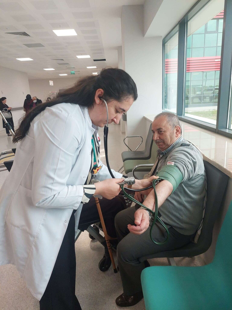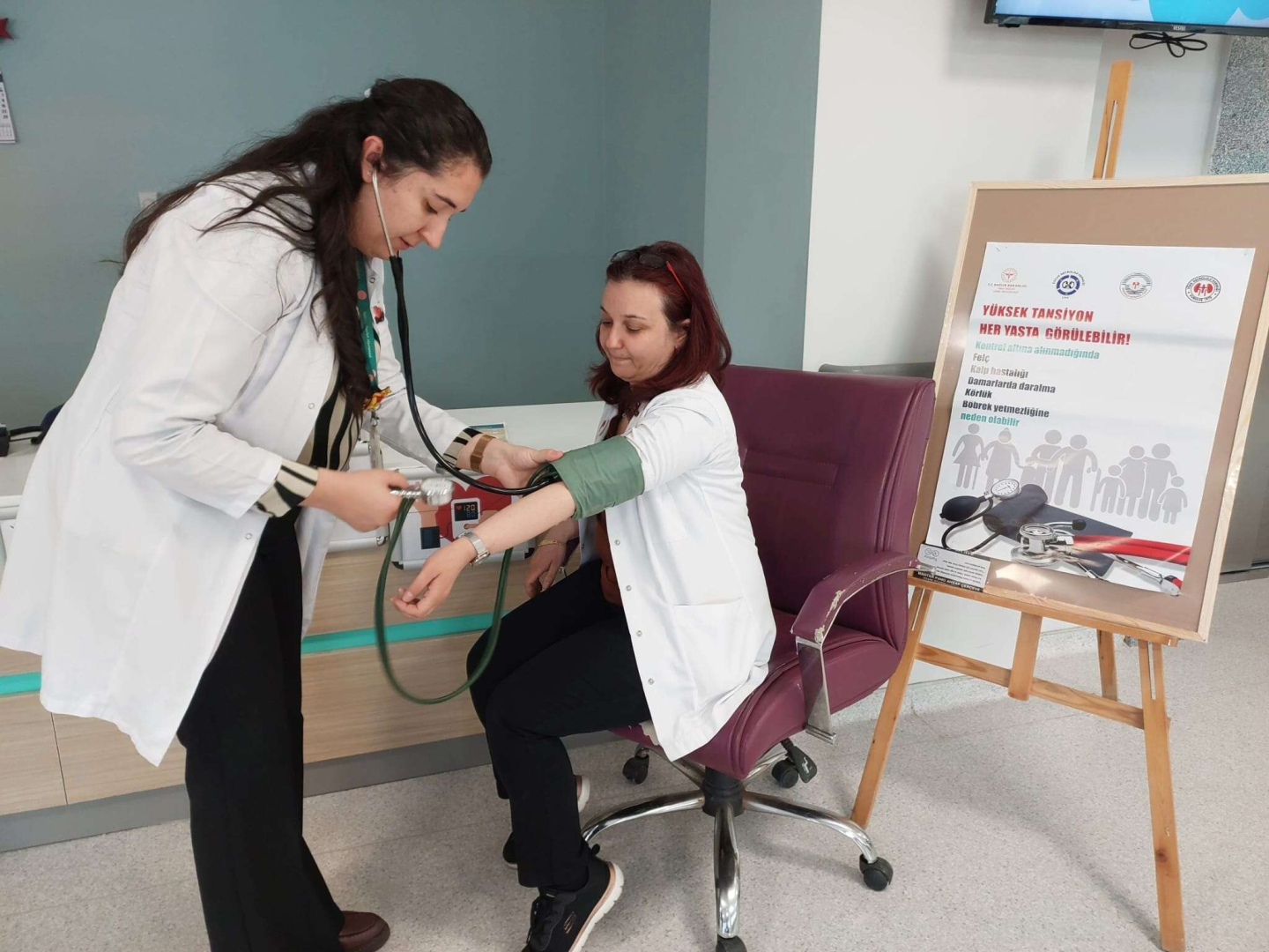 Hastanedeki polikliniklere başvuran hastalar ve hasta yakınlarına ücretsiz tansiyon ölçümü yapıldı. Ayrıca tansiyon ve tansiyondan korunma ile ilgili bilgilendirme ve broşür dağıtımı gerçekleştirildi.
