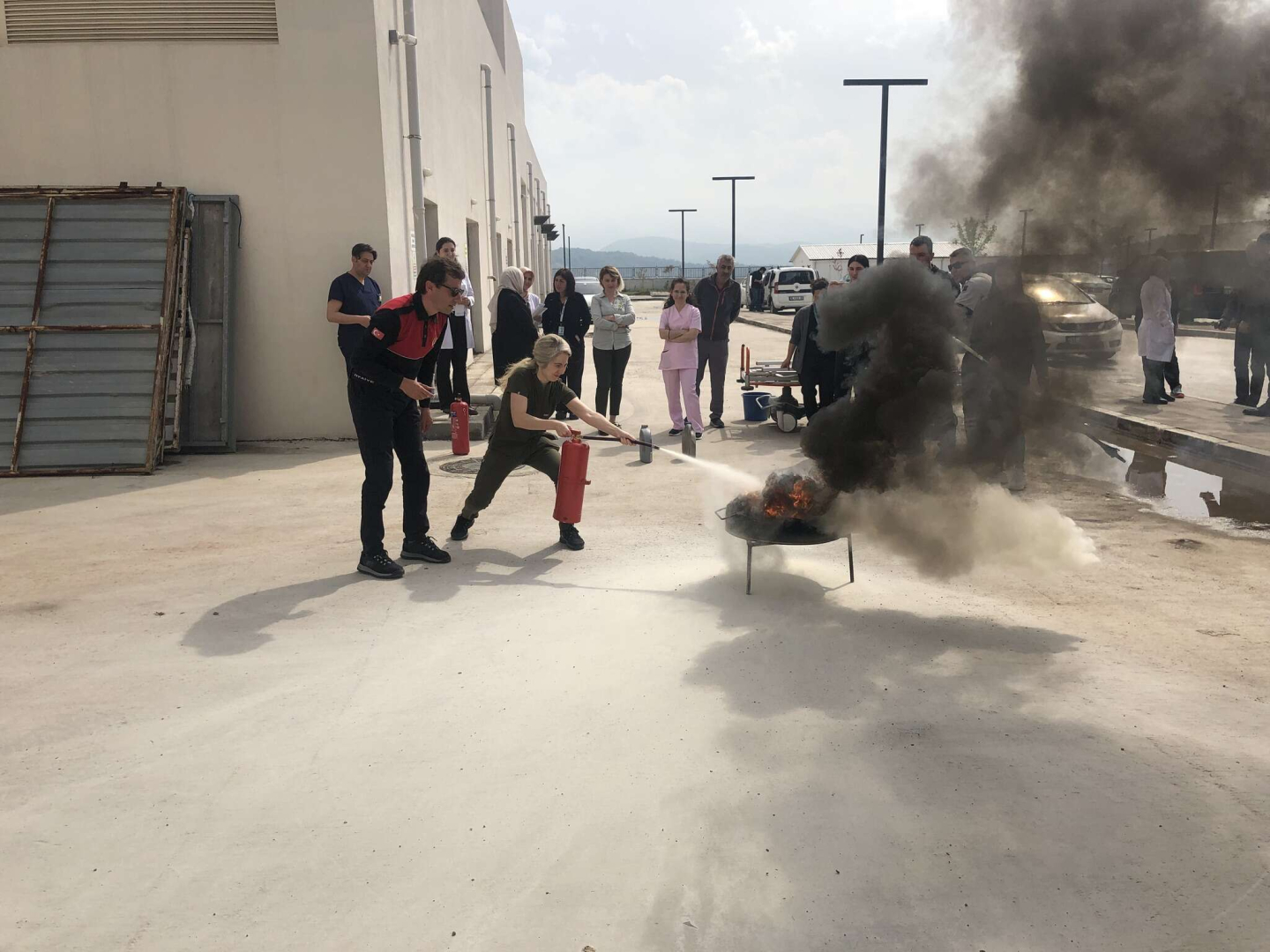 Yalova Eğitim ve Araştırma Hastanesi Afetlere Hazırlık programı kapsamında hastane personeline yangın konulu teorik ve uygulamalı eğitim verdi.