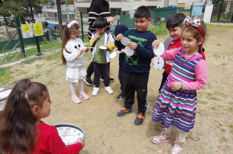 Eğitim boyunca minik katılımcılar, saat çeşitlerini keşfetme fırsatı buldu. Akrep ve yelkovan gibi saatin temel parçalarını tanıma üzerine interaktif çalışmalar gerçekleştirildi. Çocuklar, bu parçaların ne işe yaradığını ve zamanı göstermedeki rollerini uygulamalı olarak öğrendiler. Etkinliğin en ilgi çekici bölümlerinden biri ise, sayı minderleri kullanılarak yapılan saat okuma çalışmalarıydı. Bu sayede öğrenciler, teorik bilgileri somut materyallerle pekiştirerek, saati okuma becerilerini eğlenceli bir ortamda geliştirdi.