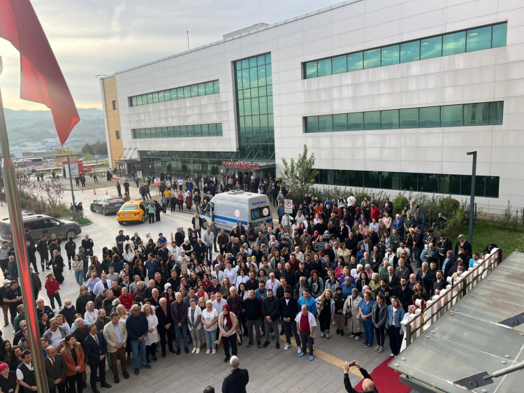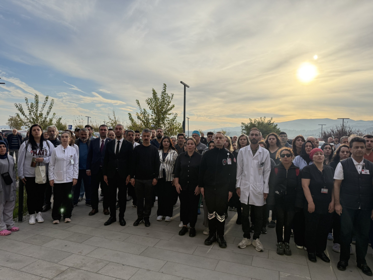 Hastane bahçesinde gerçekleştirilen törende, saat 09.05’te sirenlerin çalmasıyla birlikte tüm personel, hastalar ve ziyaretçiler Atatürk için saygı duruşunda bulundu, saygı duruşunun hemen ardından İstiklal Marşı, hep bir ağızdan coşkuyla okundu.