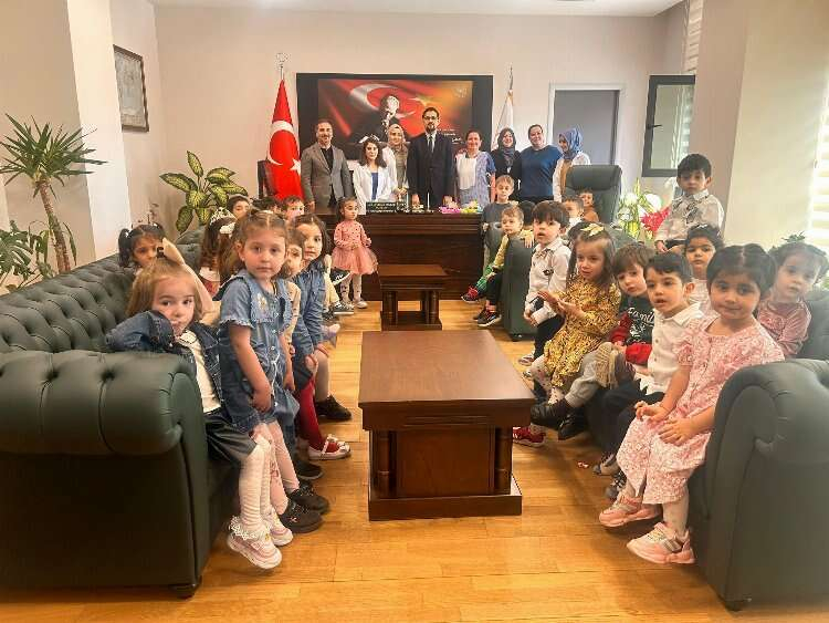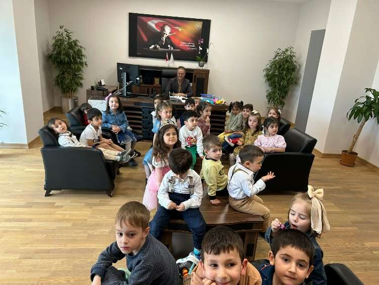 Ramazan Bayramı dolayısıyla, Yalova Eğitim ve Araştırma Hastanesi bünyesinde bulunan kreşin minikleri ve öğretmenleri, Başhekim Doç. Dr. Hasan Ergenç ile ve İdari ve Mali Hiz. Müdürü Hilmi Sezer’i makamında ziyaret etti.