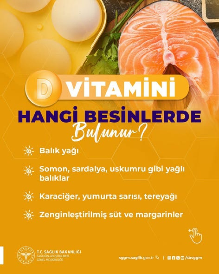 Vücudun D vitaminini sentezleyebilmesi için her gün 15 ila 30 dakika arasında doğrudan güneş ışığına maruz kalmanın yeterli olduğu belirtildi. D vitamininin, kemik ve diş gelişiminden bağışıklık sisteminin güçlenmesine kadar birçok hayati işlevde rol oynadığına dikkat çekildi. Yalova Hastanesi’nin yaptığı açıklamada, D vitamininin özellikle balık yağı, somon, sardalya ve uskumru gibi yağlı balıklarda bol miktarda bulunduğu, ayrıca karaciğer, yumurta sarısı, tereyağı ile zenginleştirilmiş süt ve margarinlerin de önemli kaynaklar arasında yer aldığı ifade edildi. Bu besinlerin düzenli tüketiminin, D vitamini düzeylerinin korunmasında etkili olabileceği vurgulandı.