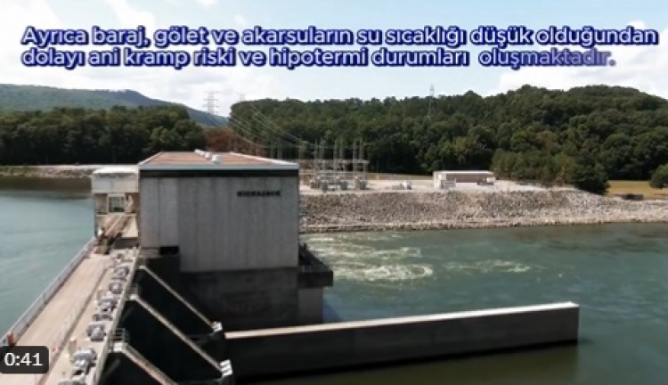Vatandaşların boğulma olaylarına karşı alması gereken önlemlerin ve boğulma ihtimali oluştuğunda uygulamaları gereken adımların sıralandığı kamu spotunda, “Gölet, baraj gölü, akarsu, su kanalları, su göletleri ve nehir gibi alanlarda yüzmeniz. Bu alanların derinliği, engebe durumu, balçık durumu ve zemin yapısı bilinmediğinden dolayı tehlikeli alanlardır. Ayrıca baraj, gölet ve akarsuların su sıcaklığı düşük olduğundan dolayı ani kramp riski ve hipotermi durumları oluşmaktadır.