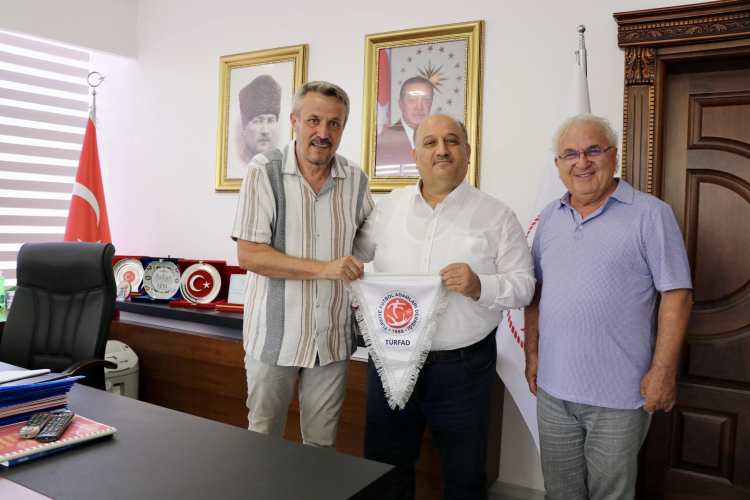 Türkiye Futbol Adamları Derneği (TÜRFAD) Yalova İl Başkanı İbrahim İnce ve Yönetim Kurulu Üyesi Engin Barman, İl Sağlık Müdürü Uzm. Dr. Osman Karakuş’u makamında ziyaret ettiler. Bir araya gelen üçlü Yalova’da sağlık ve spor çalışmaları hakkında karşılıklı sohbet ederek, fikir alışverişleri gerçekleştirdi ve güncel konular üzerinde istişarelerde bulundu.