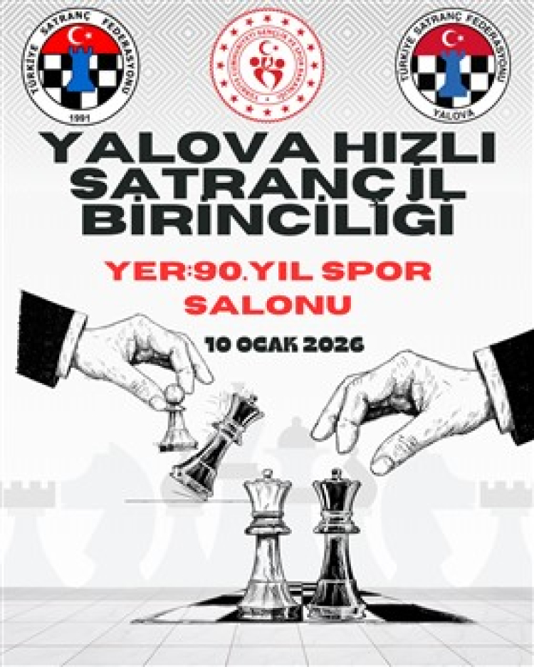 Yalova Gençlik ve Spor İl Müdürlüğü ile Yalova Satranç İl Temsilciliği iş birliğinde, Hızlı Satranç Yalova İl Birinciliği turnuvası düzenlenecek. Turnuva, 10 Ocak 2026 tarihinde Yalova ili Merkez ilçesinde bulunan 90. Yıl Spor Salonu’nda gerçekleştirilecek.
