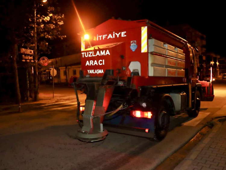 Yalova İtfaiyesi buzlanmaya karşı tuzlama çalışması yaptı