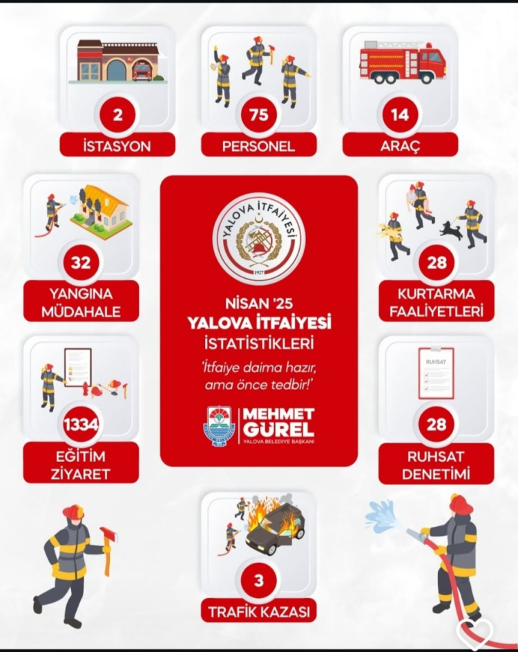 Açıklanan verilere göre Nisan ayı boyunca 32 yangına müdahale edildi. 28 kurtarma operasyonu gerçekleştirildi. 3 trafik kazasında görev alındı ve 28 ruhsat denetimi yapıldı. Bin 334 eğitim ve bilgilendirme ziyareti düzenlendi.