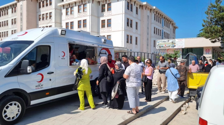 Kızılay İl Merkezi Başkanı İbrahim Bayram ve genç gönüllüler, 22 Haziran Pazar günü saat 10:15-13:15 saatleri arasında gerçekleşen YKS'nin ikinci oturumu olan AYT sınavına giren gençlerin heyecanına ortak olup okul önlerinde bekleyen velilere ikramlarda bulundu.