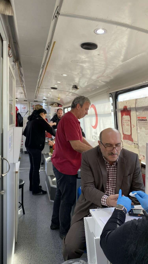 Okul bahçesine gelen Kızılay aracı içerisinde gerçekleşen kan bağışına öğretmenler, öğrenciler, öğrenci velileri ve okul çalışanları büyük ilgi gösterdi.