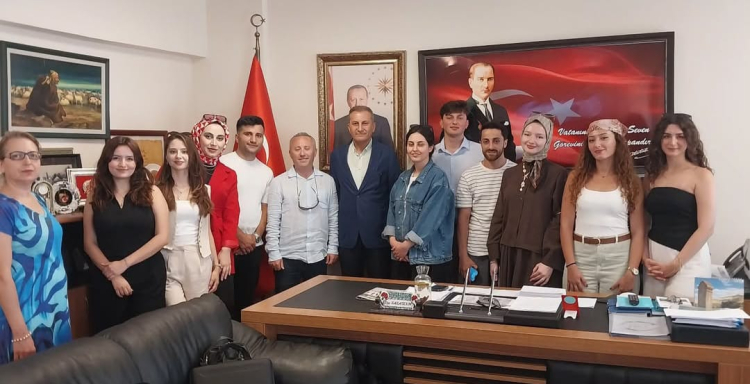 Gençlik Otobüsü'nün Genel Koordinatörü Maksut Coşkun Dokunulmaz, projede yer alan gençlerle birlikte İl Kültür ve Turizm Müdürü Ziya Karatekin'i makamında ziyaret etti.