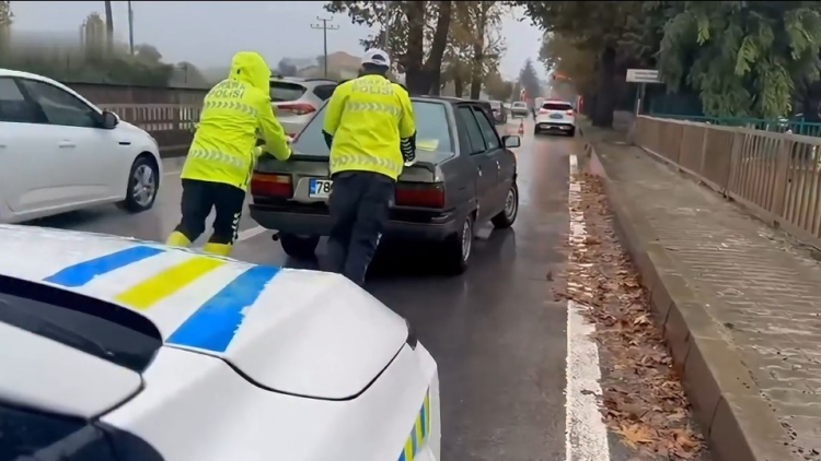 Yalova polisi yolda kalan sürücülerin yardımına koştu