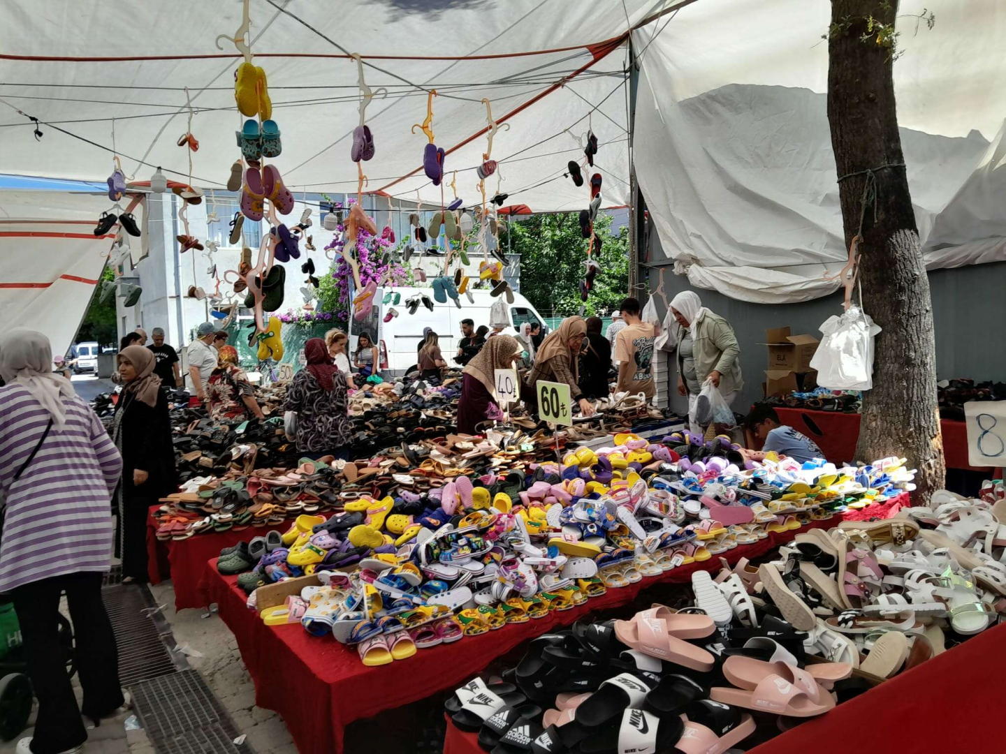 Her Pazartesi günü Yalova’nın Çiftlikköy ilçesinde faaliyet gösteren Sosyete Pazarı, vatandaşların ilgisini çekmeye devam ediyor. Tezgahlarda bulunan giyim ürünlerinin gelen zamlardan etkilenmesinin ardından vatandaş ikinci el kıyafetlere yönelirken bile bütçesini düşünmek zorunda kalıyor.