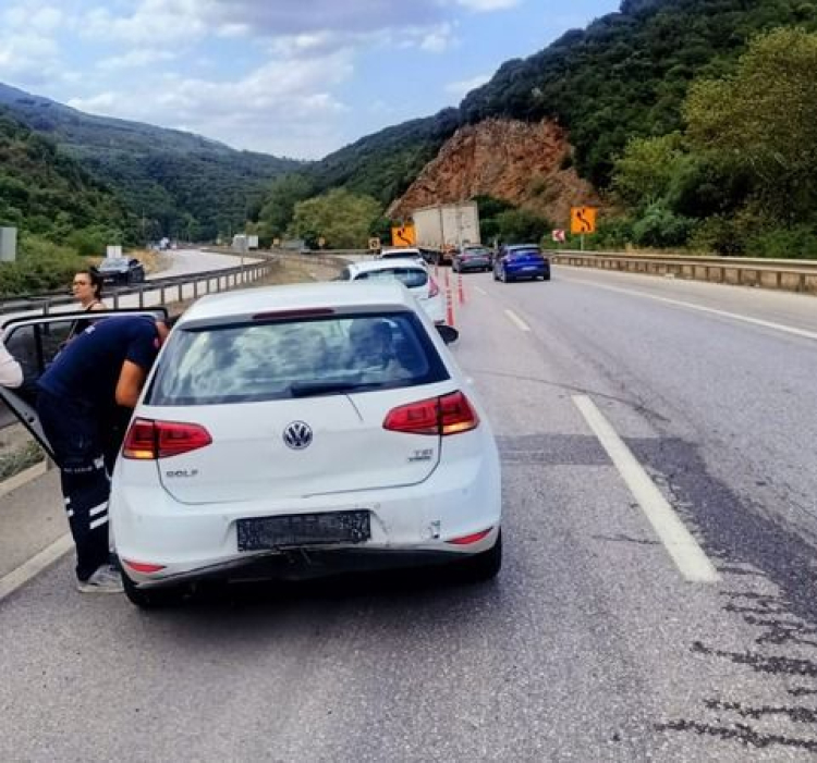 Bursa- Yalova Karayolu’nda meydana gelen trafik kazasında öndeki araç hızını düşürmesiyle arkadan gelen araç duramayarak öndeki araca arkadan çarptı. Kazada maddi hasar meydana geldi.
