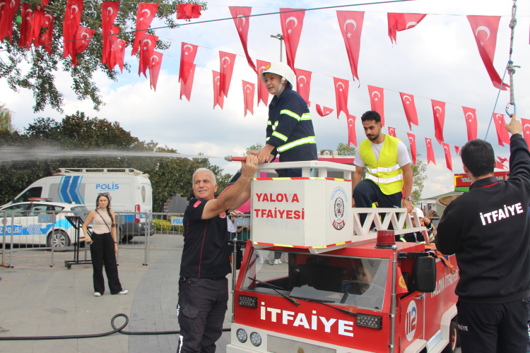İtfaiye Haftası dolayısıyla Yalova Belediyesi İtfaiye Müdürlüğü tarafından 15 Temmuz Demokrasi ve Cumhuriyet Meydanı’nda kurulan alanda minikler eğlenceli etkinliklere katılarak bir günlüğüne itfaiyeci olmanın heyecanını yaşadılar.