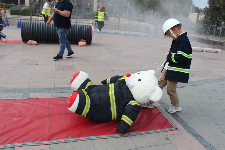 Okullardan gelen okul öncesi miniklerin akınına uğrayan alanda birbirinden eğlenceli etkinlikler gerçekleştirildi. Yanan bir evi temsil eden makete su sıkarak müdahale eden minikler yangın söndürmenin heyecanını yaşadılar. Ardından da mini itfaiye aracının üzerinden itfaiyeci abilerinin kontrolünde iple kayan minikler gerçek bir yangına müdahale deneyimine eğlenerek şahitlik ettiler. Bununla da kalmayan etkinliklerde çocuklara çeşitli hediyeler takdim edildi.