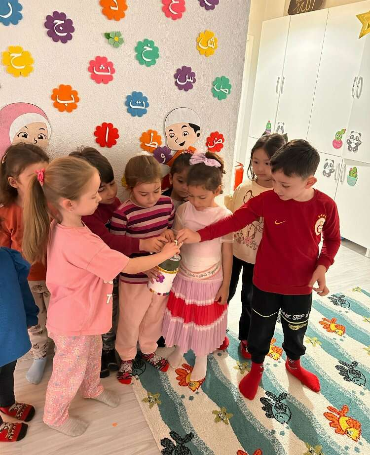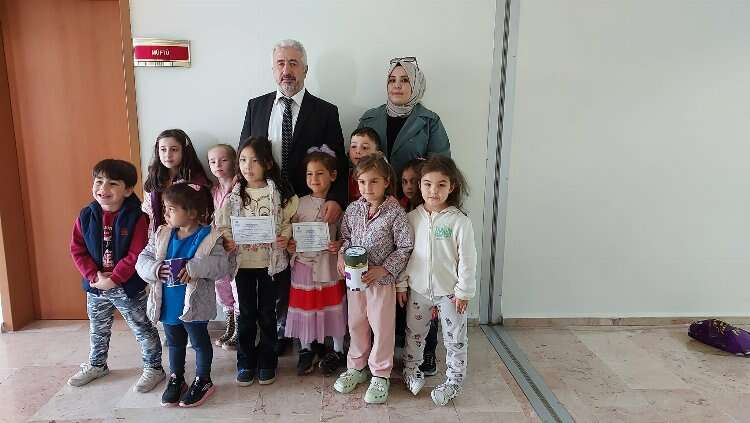 Çiftlikköy Müftülüğü Taşköprü 4-6 yaş Kur’an Kursu öğrencileri, 23 Nisan Ulusal Egemenlik ve Çocuk Bayramı dolayısıyla biriktirdikleri harçlıklarını Filistinli çocuklara ulaştırmak için Çiftlikköy Müftülüğüne teslim ettiler.