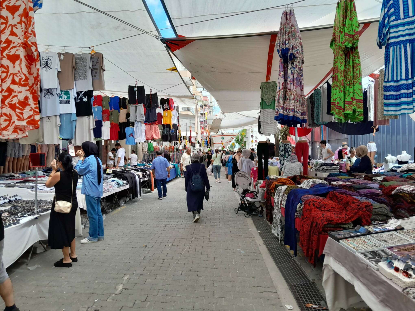Yalova’nın Çiftlikköy ilçesinde her pazartesi günü hizmet veren Sosyete Pazarı, vatandaşların ilgisini çekmeyi sürdürüyor. Sosyete Pazarı her türlü çeşit ürünleriyle başlıca giysi, ayakkabı, terlik olmak üzere satışa sunuluyor. Tezgahlardaki ürünlerin gelen zamlardan dolayı etkilenmesi vatandaşların ve esnafların zorlanmasına neden oluyor.