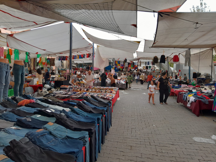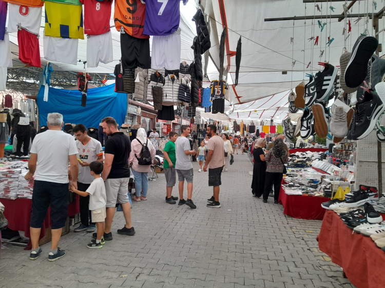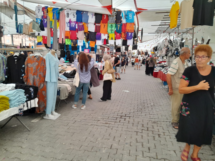 Sıcak havalarda fazlasıyla tercih edilen ince kumaşlı keten pantolonlar piyasada 800 ile 2000 TL arasında satılırken pazarda 200 ile 400 TL arasındaki fiyatlarıyla en çok tercih edilen ürünler oldu. Pazarda çorapların tanesi 25 TL’den başlarken 5 çifti 100 TL’den satılıyor. Eşofmanların fiyatı 100 TL’den başlayarak 500 TL’ye kadar değişiklik gösterebiliyor. Kadın taytlarının fiyatları ise 100 TL ile 300 TL arasında olarak sabit kaldı. 500 TL’den başlayan spor ayakkabıları ise 2000 TL’ye kadar çıktı. Çocuk pijama takımları 100-150 TL olurken erkek-kadın yetişkin pijama takımlarının fiyatı ise 300 TL’den başlıyor. Halı, kilimler genişliğine ve boyutlarına göre 300 TL ile 1500 TL arasında değişiklik gösterirken, kırlent kılıfları da 150-200 TL’ye satılıyor. Pardösüler 1000 TL ile 3500 TL arasında farklılık gösterirken, güneş gözlükleri gibi aksesuarların fiyatları 80 TL’den başlıyor. İç çamaşırlarında adet 50 TL olarak 3 tanesi 100-150 TL’ye satılıyor.