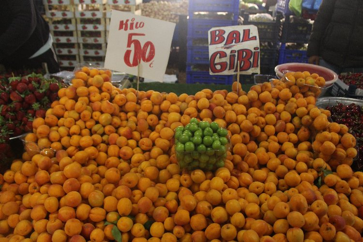 Kayısı pazardaki pek çok meyve tezgahında yerini alırken kiraz vatandaşların en çok ilgi gösterdiği meyvelerin başında geldi. Piyasaya 100 TL ile giriş yapan çilek bu hafta 80 TL’ye düştü. Tezgâhlara çıktığı ilk haftalarda kilosu 100 TL’den satılan karpuz bu hafta 50 TL’yi gördü. Kavunun ise tanesi 80 TL’den 60 TL’ye indi. Fiyat düşüşleriyle bu hafta vatandaşları sevindiren papaz erik 100 TL, karadut 100 TL ve malta eriği 60 TL’den satıldı. Kayısının kilosu 100 TL’den satılırken nektarin ise kilosu 100, paketi 40 TL’den satıldı. Bir önceki hafta kilo fiyatı 150 TL olan kiraz bu hafta bollaşmasıyla birlikte 100 TL’ye düştü.