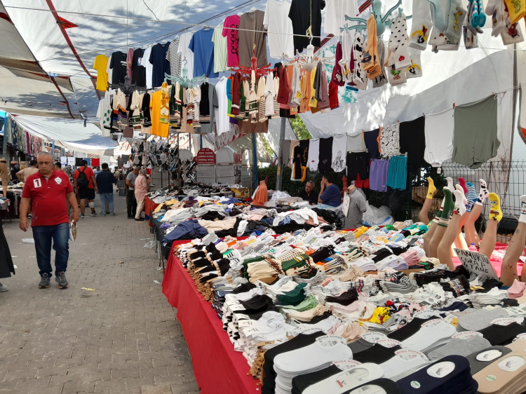 Pazartesi günleri hizmet veren ve Yalova halkı tarafından büyük ilgi gören Çiftlikköy Sosyete Pazarı, başta çeşit çeşit kıyafetler olmak üzere diğer ürünlerle birlikte vatandaşların ihtiyaçlarını karşılamayı sürdürüyor. Sosyete Pazarı’nda, uzun elbiseler 400-600 TL, pantolon 350 TL, yazlık şortlar (parça) 100-150 TL, tunik elbise 130-150 TL, atlet 3 parça 100 TL, pamuklu çorap 4 tane 100 TL, spor ayakkabılar 500 TL, erkek tişörtleri 100-150 TL, klimalı şallar 150-200 TL ve kırlent kılıfları 100 TL’den başlayan fiyatlar ile satışa sunuldu.